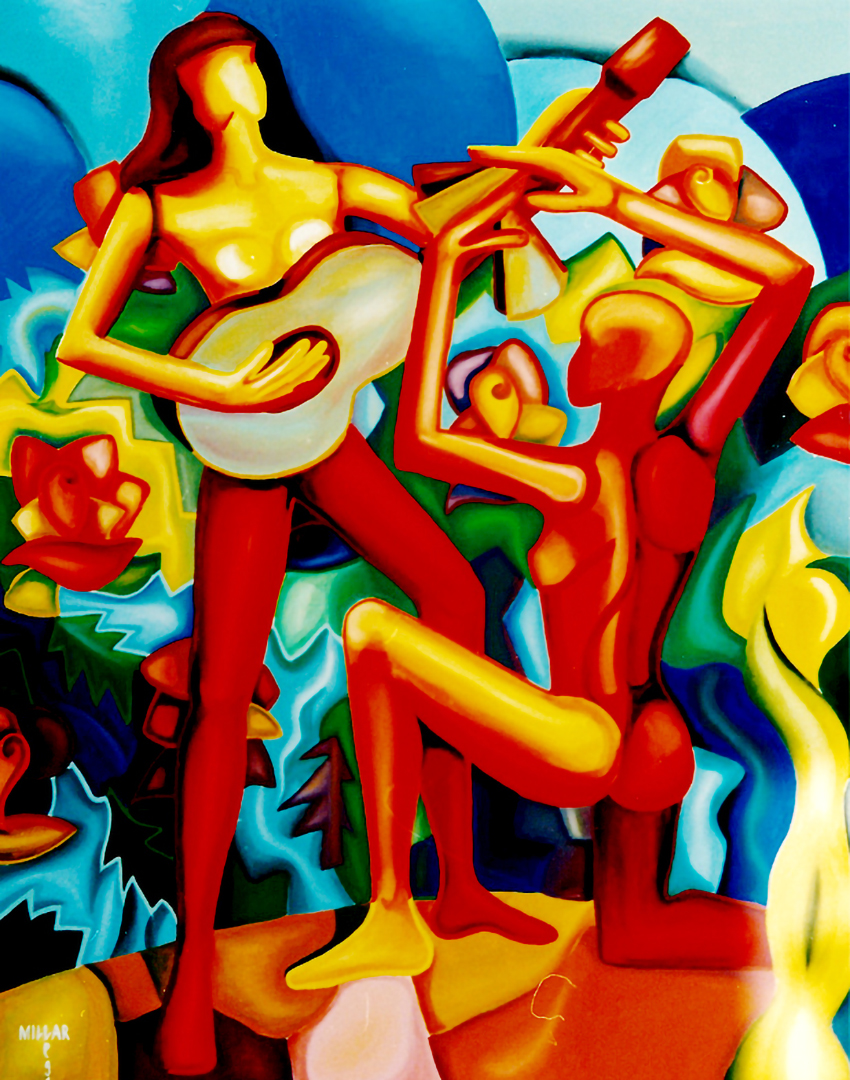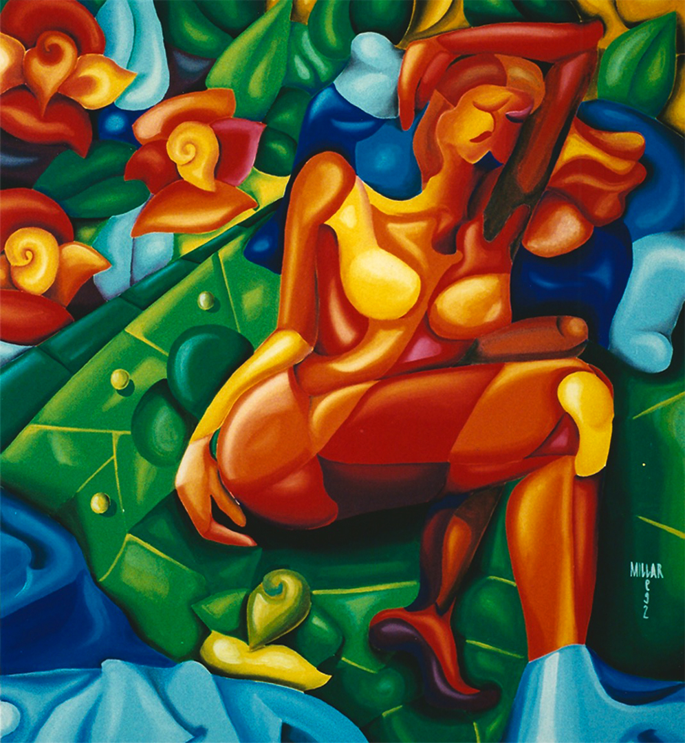 L'opera di Beatriz Millar indaga la relazione tra corpo e colore, sospesa tra luminosità e ombra. Le figure femminili, plastiche e fluide nella loro trasformazione, si collocano in un dialogo con l'eredità del Futurismo, tra dinamismo e tensione formale.