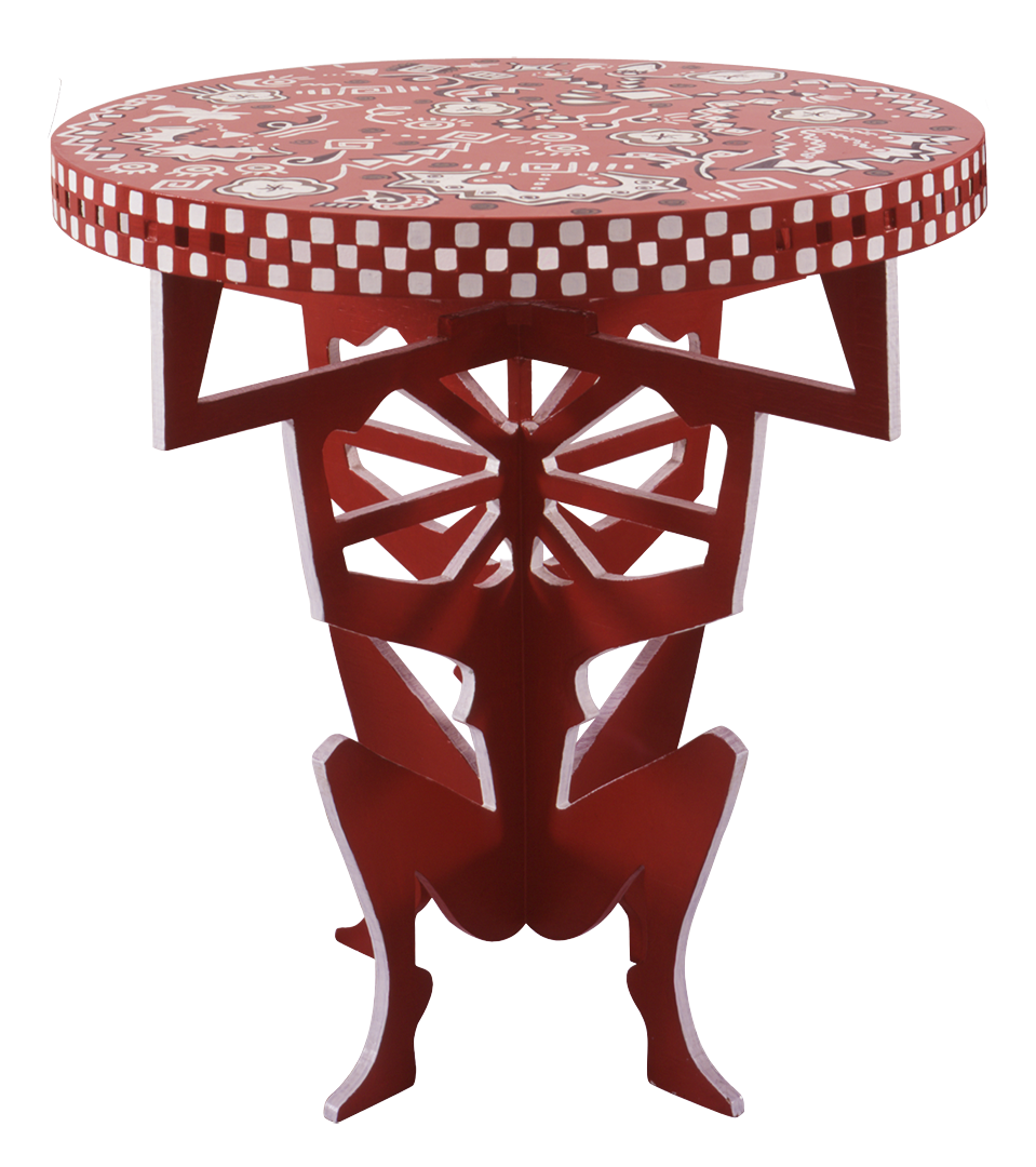 Nella combinazione White and Black is Red, la collezione si compone di due sedie — una bianca e una nera — e di un tavolo a quattro gambe. Le forme dialogano tra loro: due schienali della sedia diventano la base del tavolo.