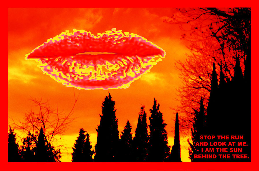 Le cartoline sono fittizie e insieme profondamente vere: messaggi sospesi tra cielo e umano, tra finestra e orizzonte. La bocca che parla è la bocca del cielo, un segno di speranza che amplifica l'alba, ne raccoglie la tenerezza e la rilancia verso chi osserva.
