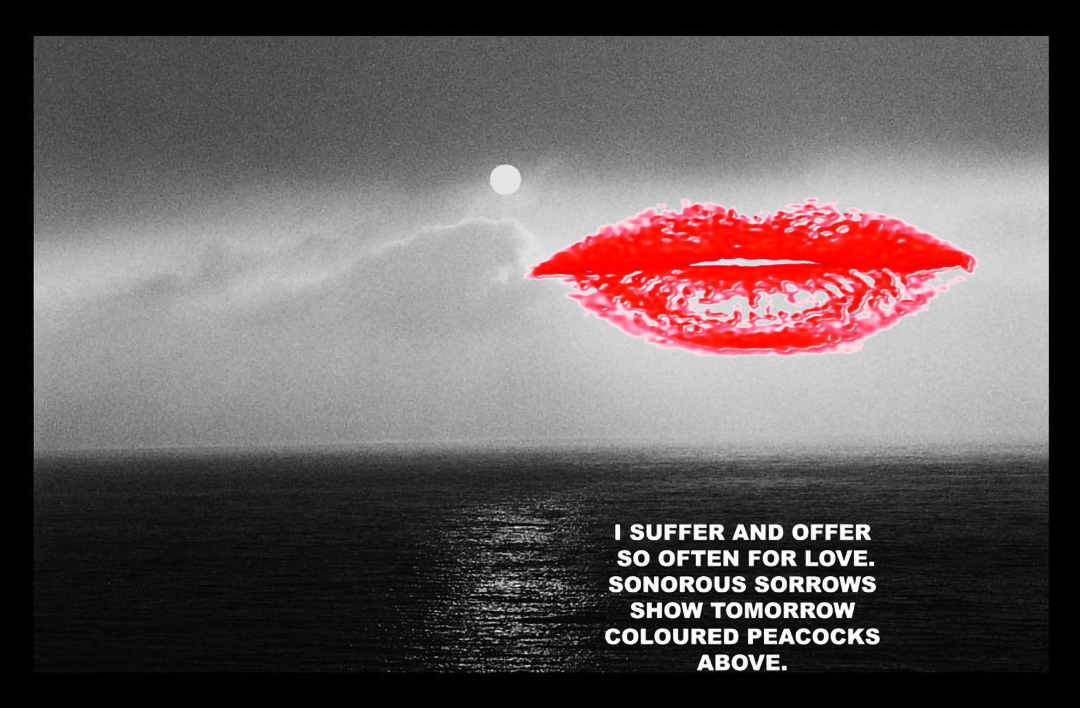 Queste immagini diventano cartoline giganti, visioni accese e potenziate da una luce che si fa promessa. Su ciascuna, una bocca — simbolo ricorrente nel linguaggio di Millar — appare come un bacio offerto al mondo, una voce che emerge dalla volta celeste per dire un semplice, universale buongiorno.