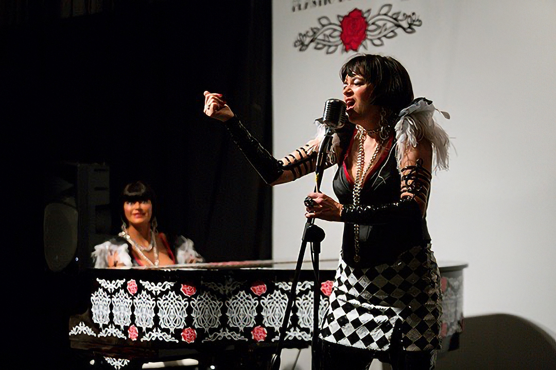 La prima performance avviene al Byblos Art Hotel di Verona (2007) con Clown Clone and the Piano Tattoo, presentata poi anche al Palazzo dei Congressi di Roma (2008): un alter ego costruito con pelle di silicone, piume e paillettes. Un'apparizione audace, sensuale, notturna: il travestimento come verità, la maschera come rivelazione.
